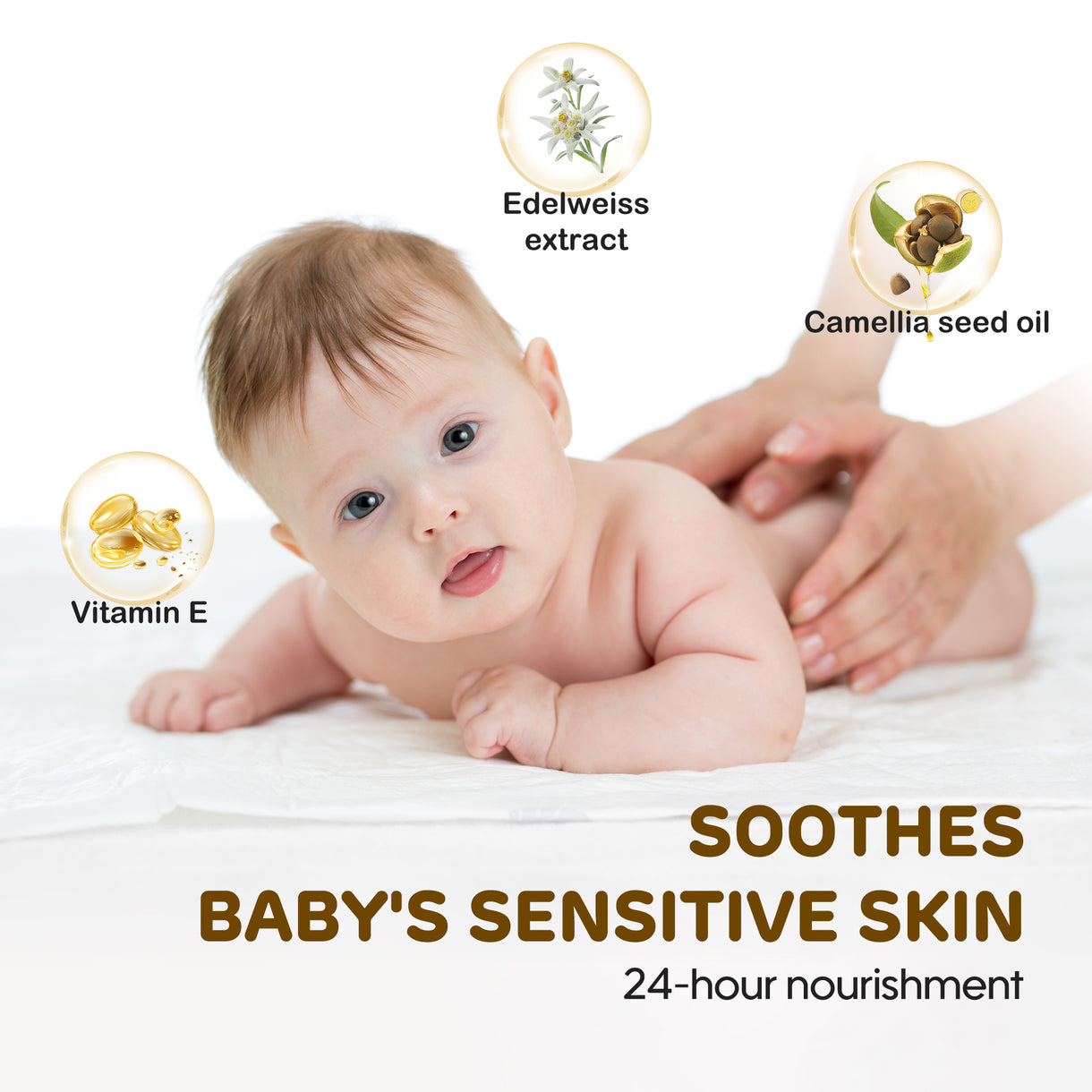 Perfect for daily use, it soothes sensitive skin and helps replenish moisture after bathing, keeping your baby comfortable and nourished.