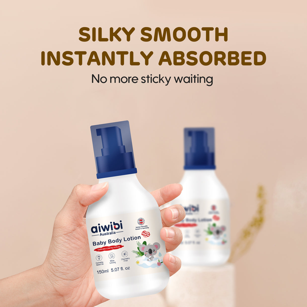 Aiwibi Baby Body Lotion offers gentle care with natural ingredients like Vitamin E and camellia seed oil.