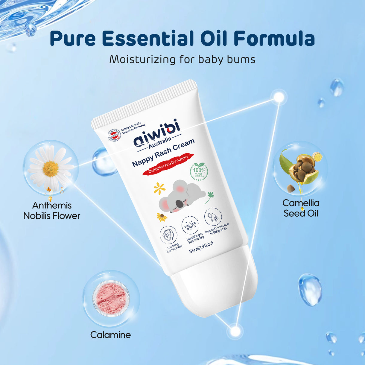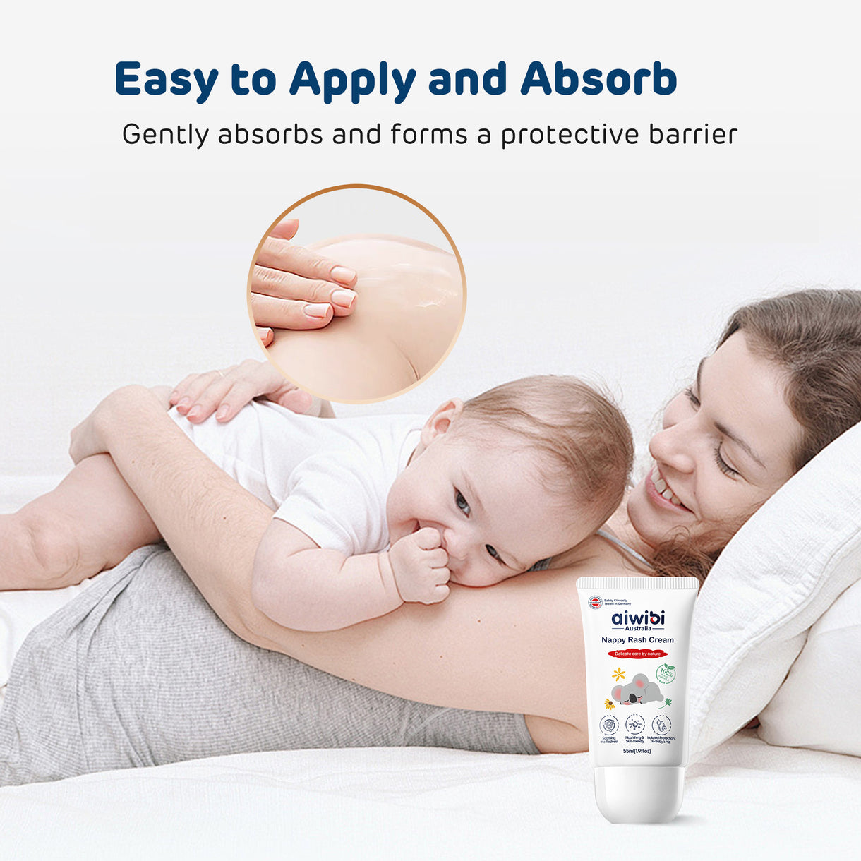 Formulated with natural ingredients like Beeswax and plant extracts, Aiwibi Nappy Rash Cream creates a protective barrier that prevents irritation and moisturizes effectively.