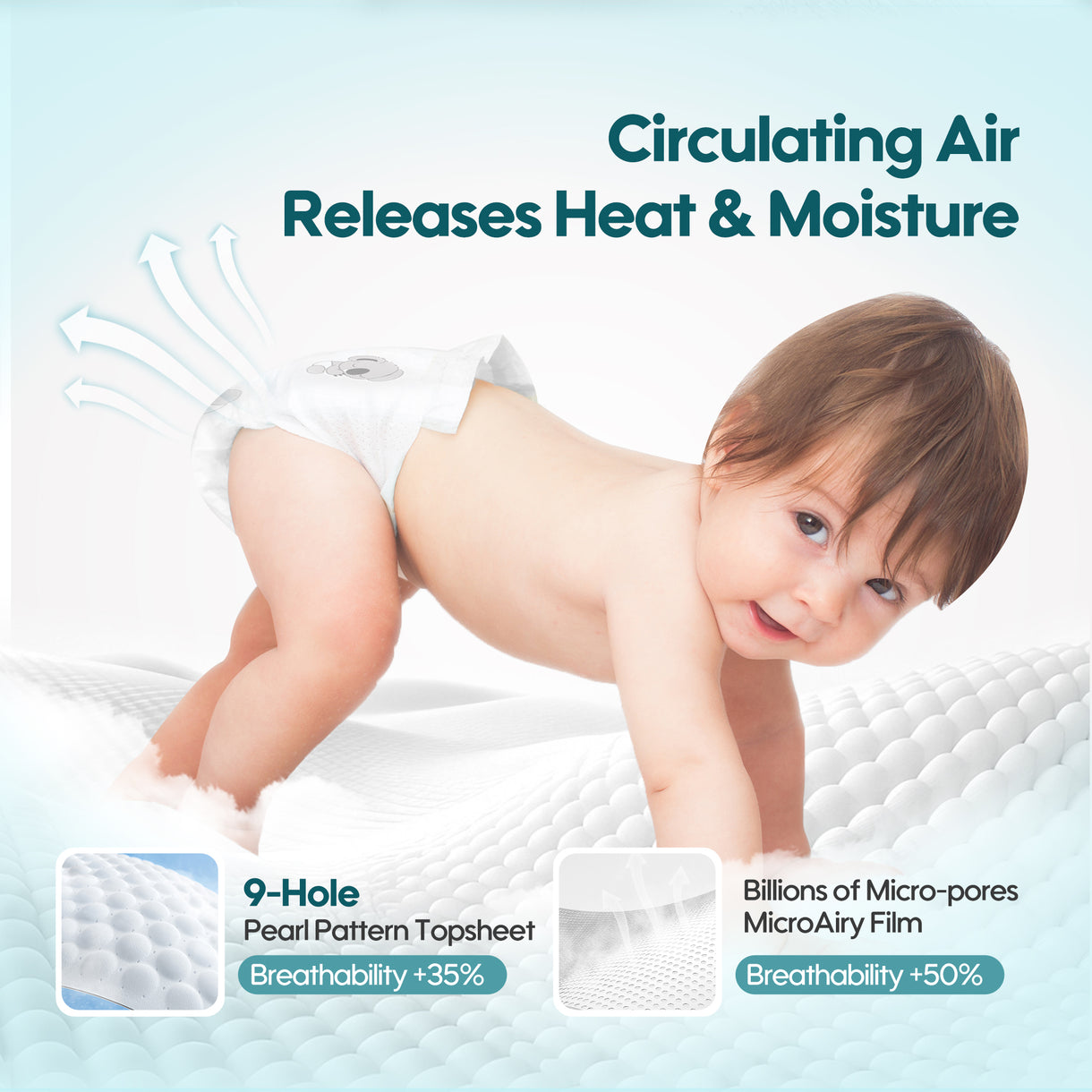 The breathable Micro Airy™ Film and innovative 360° Comfort Fit Waistband™ ensure maximum comfort and airflow, while the 9-Hole Pearl Pattern Topsheet reduces skin contact and friction.
