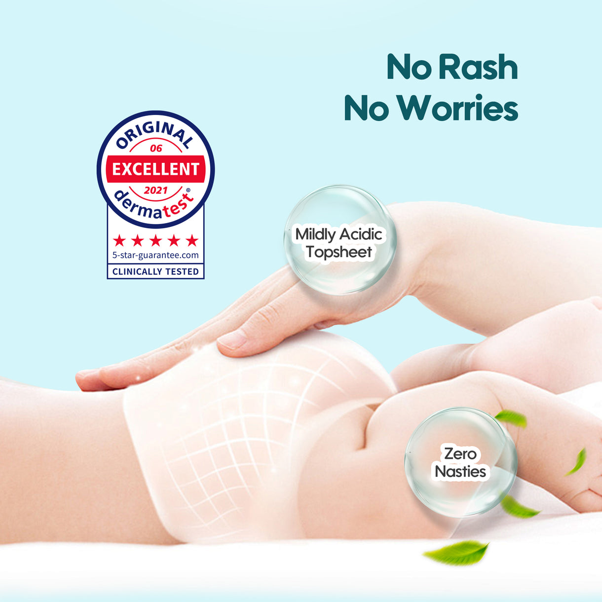 Designed with double leak guards, a fast-dry layer, and a wetness indicator, these products provide ultimate protection for your baby’s delicate skin while being kind to the planet.