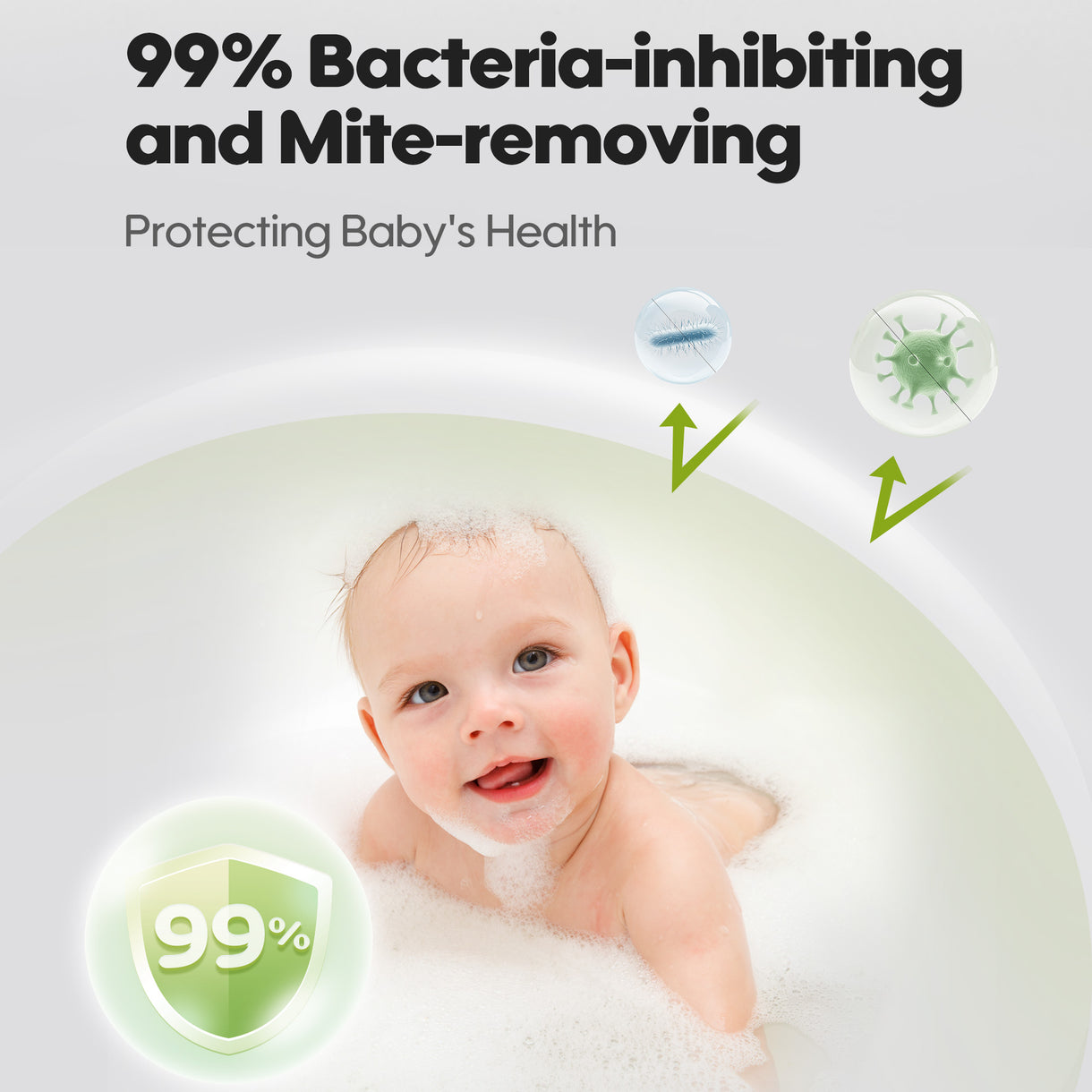 99% bacteria-inhibiting and mite-removing prevents bacteria and mite buildup, safeguarding delicate baby skin.