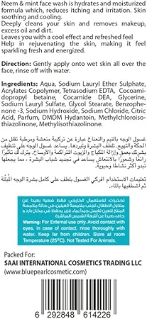 Neem extract acts as a natural antibacterial agent that helps fight acne and pimples, while mint extract cools and soothes irritated skin, leaving you feeling fresh and rejuvenated. Regular use of this face wash promotes a clear, even-toned, and glowing complexion, making it the perfect addition to your daily skincare routine.