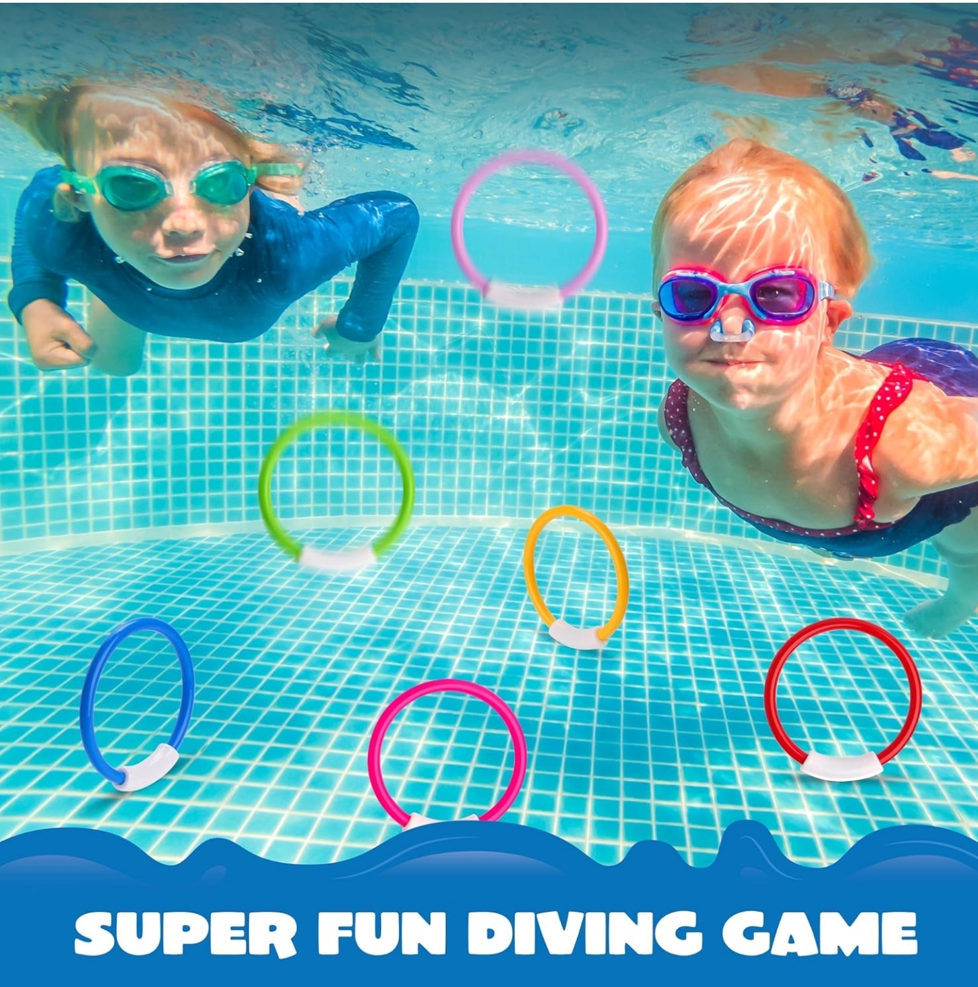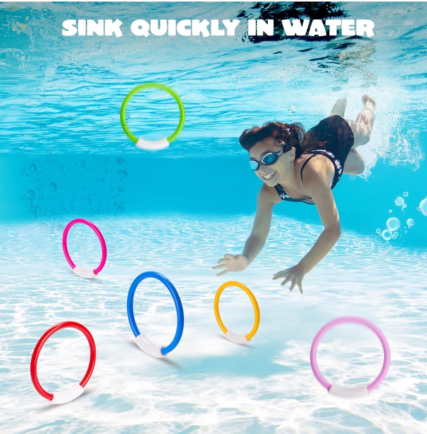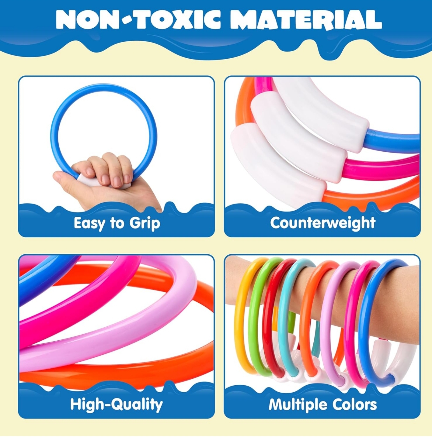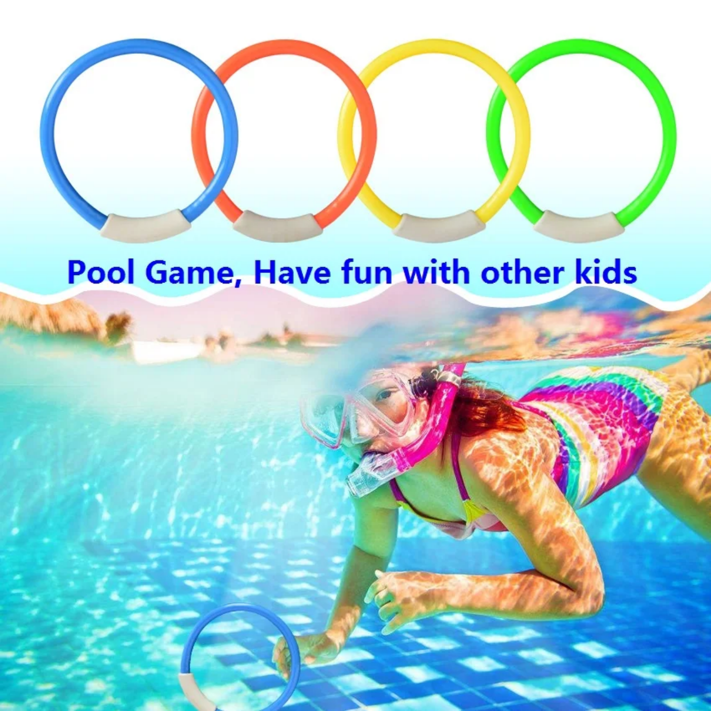 4pc Diving rings, pool toys, Colorful pool rings for kids, underwater training.