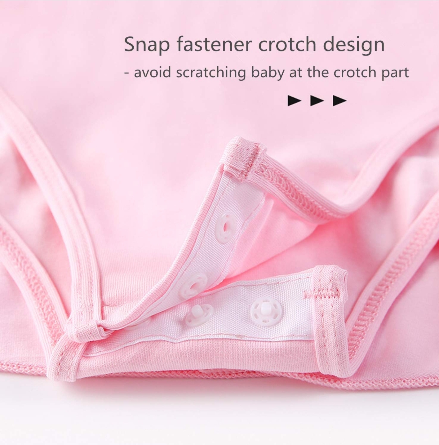 Snap fastener crotch design to provide safety and comfort at crotch part.