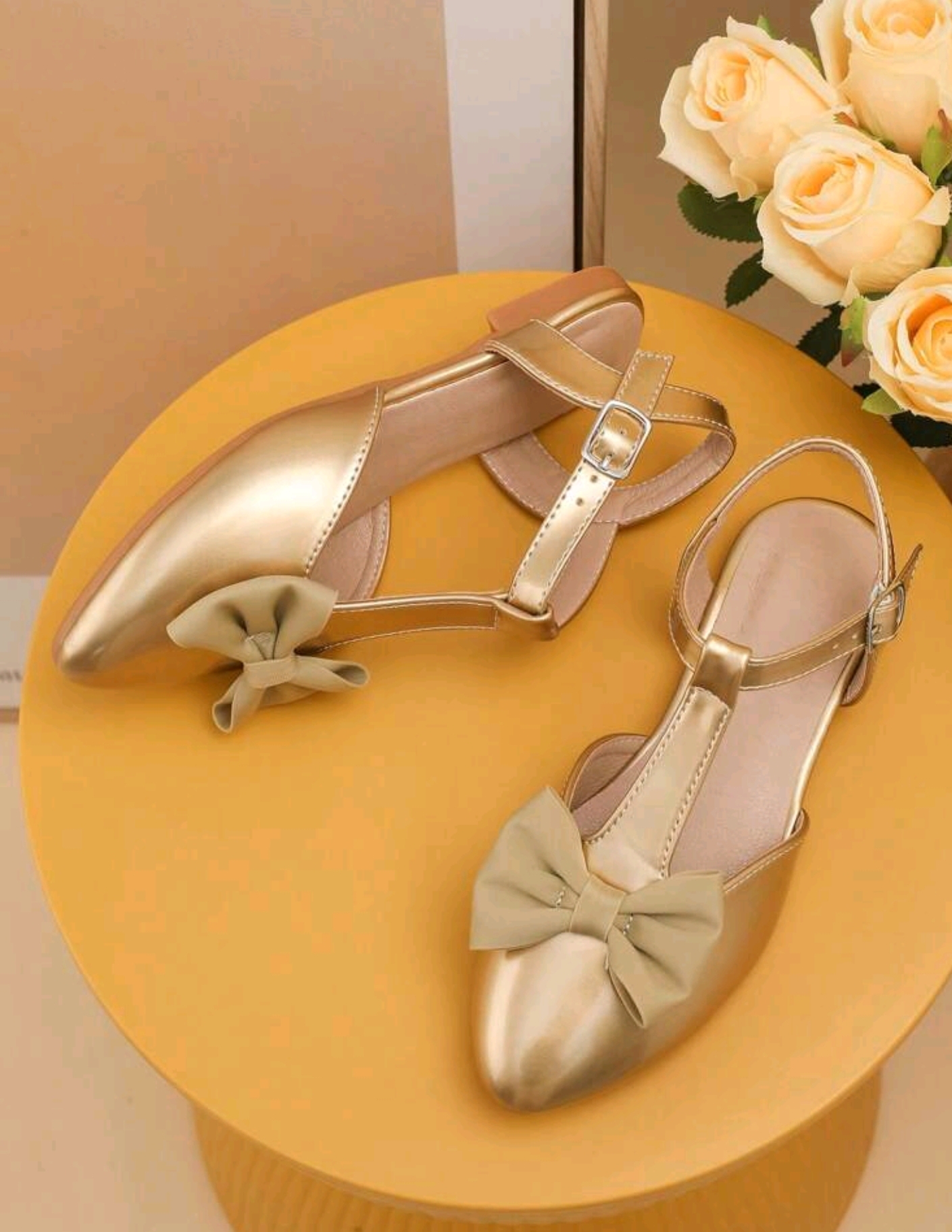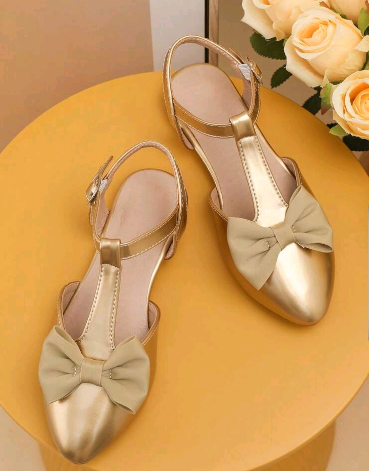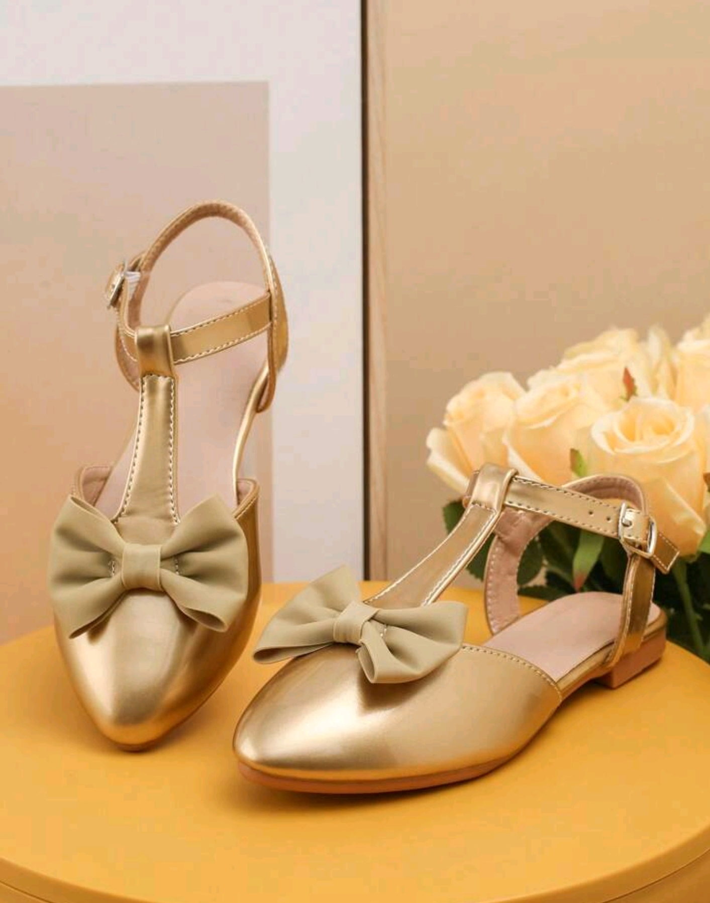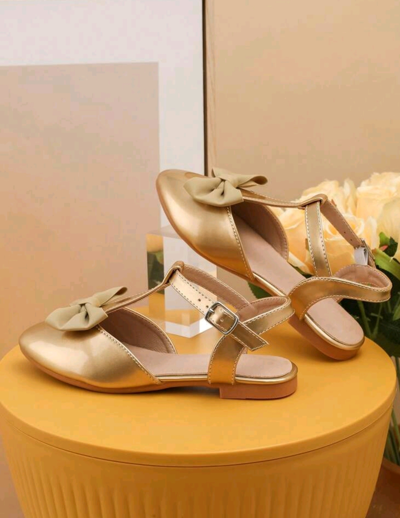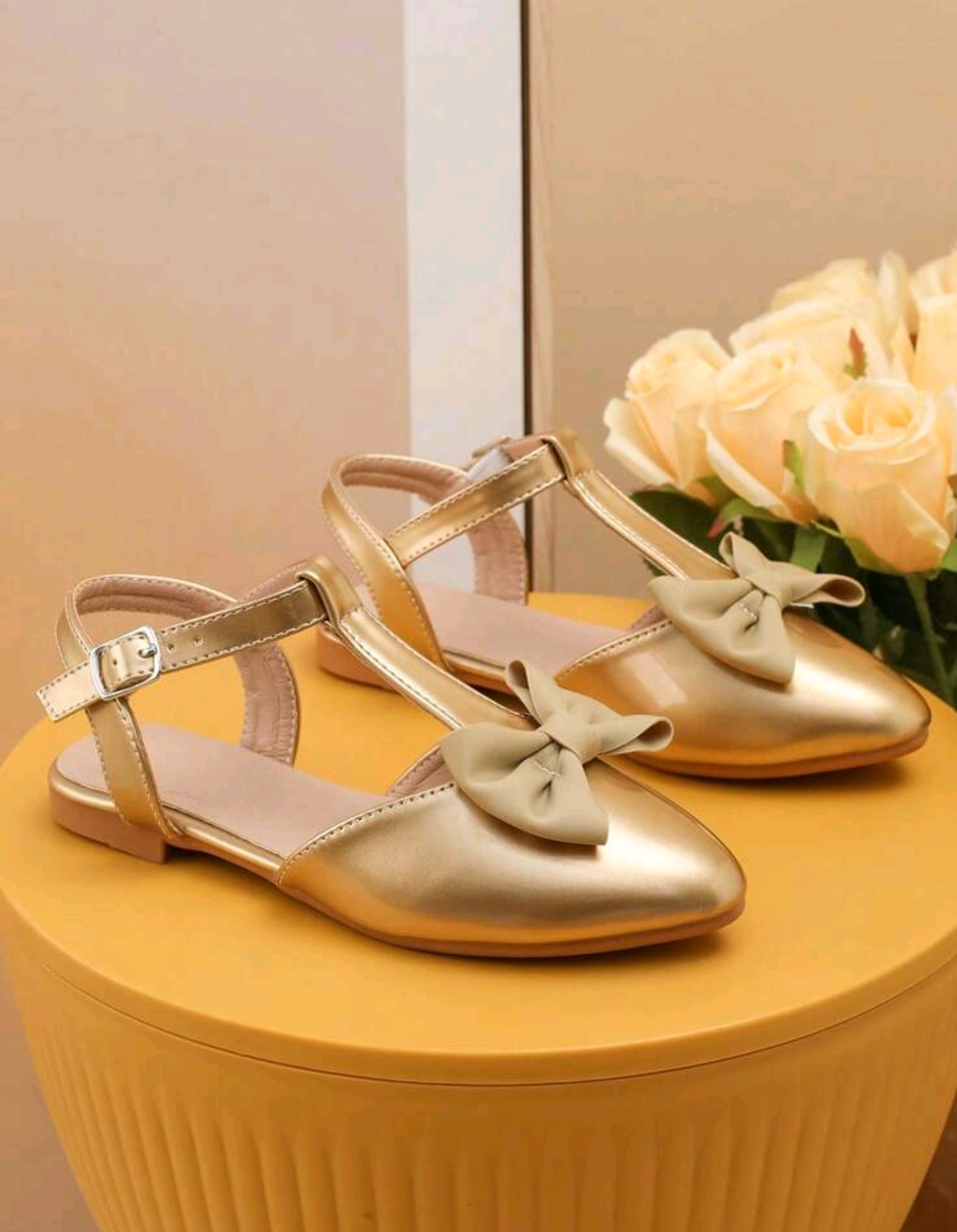 Girls Golden Fashion Flat Shoes.