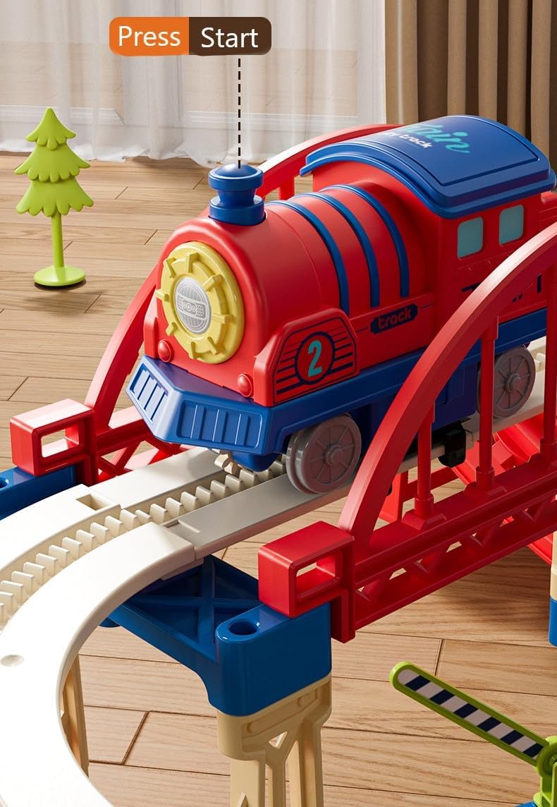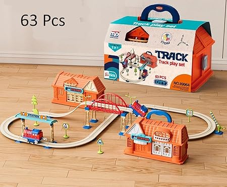 HALAYAYA Kids Train Track Educational Toys Set, Train Tracks & Accessories for Kids, Toddler Boys and Girls (63Pcs)