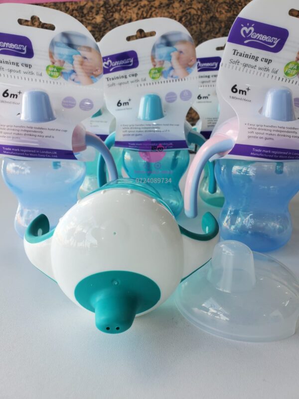 The Momeasy Training Cup features an innovative spill-proof design, providing a gentle flow of liquid when your child sips from the cup. The spout or straw is designed to be leak-proof, allowing your child to drink from any angle without the risk of spills.
