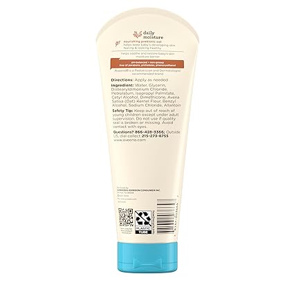 Nourish your baby’s delicate skin with Aveeno Baby Daily Moisture Body Lotion – a gentle, dermatologist-tested formula made with natural colloidal oatmeal and rich emollients to keep your baby’s skin soft, smooth, and protected for up to 24 hours.