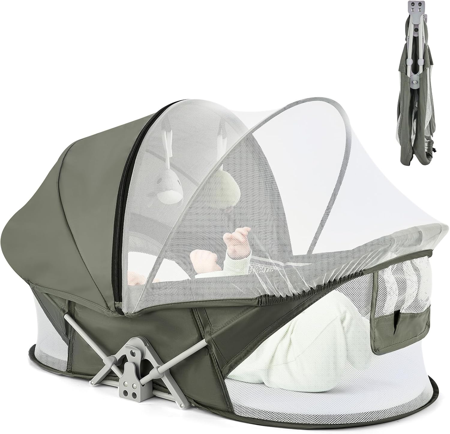 Portable Baby Bassinet Travel Baby Bed, Baby Cribs Travel Pod for Outdoors Baby Lounger Infant Travel Bed with Mosquito Net and Sunshade Canopy, Lightweight Washable Foldable
