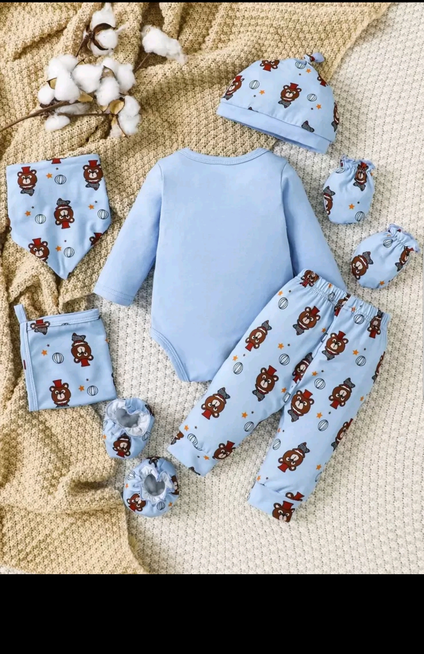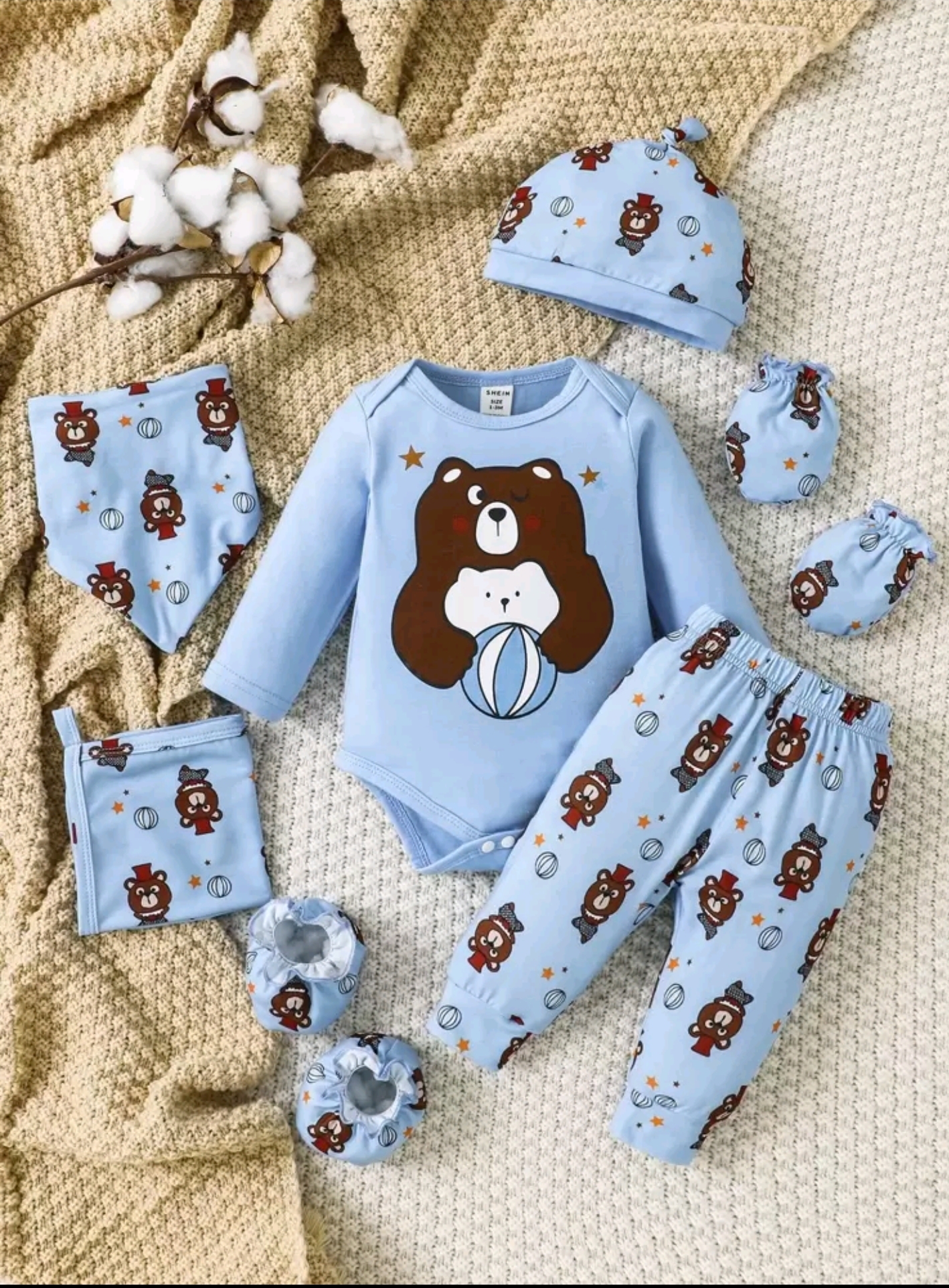 Be the first to review “Shein Baby Boy 6pcs, Bear print Bodysuit & pants”
