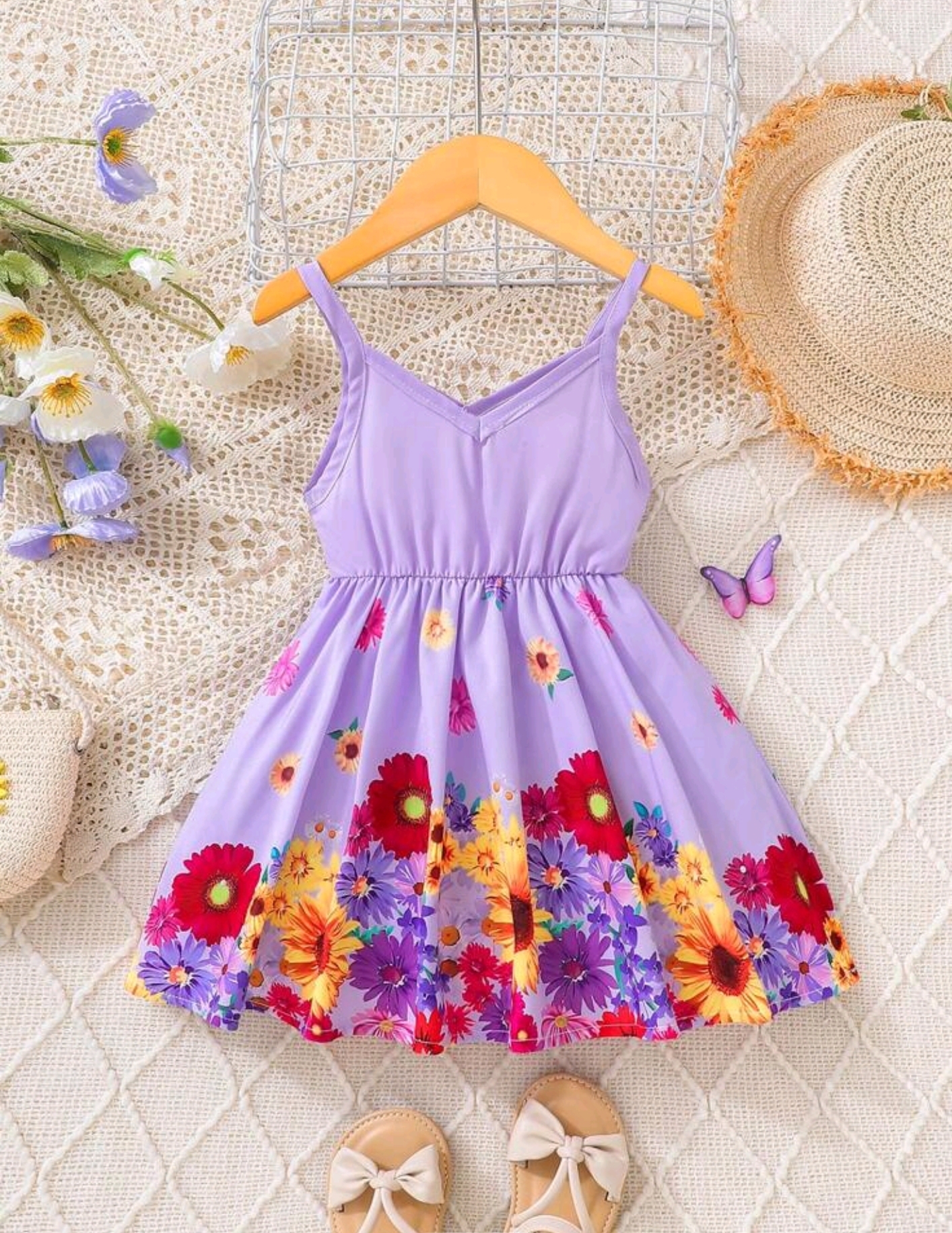 Shein Infant cute floral Daisy, Butterfly print, sleeveless dress.